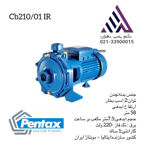 پمپ آب پنتاکس ایتالیا(وارداتی اصلی) تکفاز پروانه برنجی مدل CB210/01۳۱٬۰۰۰٬۰۰۰ تومان