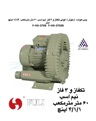 پمپ هواده ( بلوئر ) فولی تکفاز و ٣ فاز نیم اسب ۶٠ متر مترمکعب ١/١/۴ اینچ مدل F-HG-370B F-HG-370SB