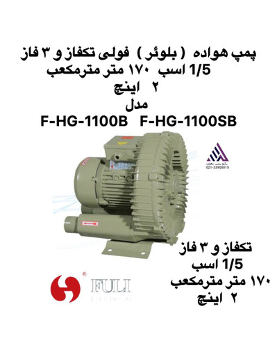 پمپ هواده ( بلوئر ) فولی تکفاز و ٣ فاز 1/5 اسب ١٧٠ متر مترمکعب ٢ اینچ مدل F-HG-1100B F-HG-1100SB