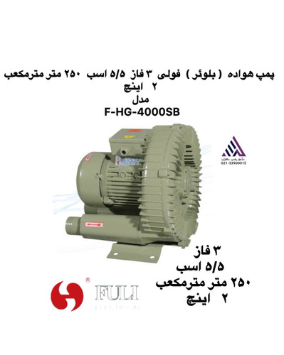 پمپ هواده ( بلوئر ) فولی ٣ فاز ۵/۵ اسب ٢۵٠ متر مترمکعب ٢ اینچ مدل F-HG-4000SB