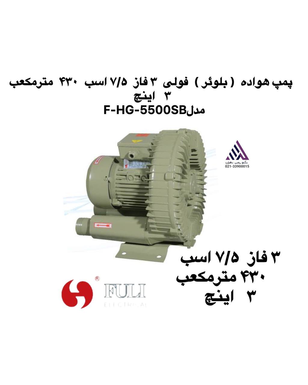 پمپ هواده ( بلوئر ) فولی ٣ فاز ٧/۵ اسب ۴٣٠ مترمکعب ٣ اینچ مدل F-HG-5500SB