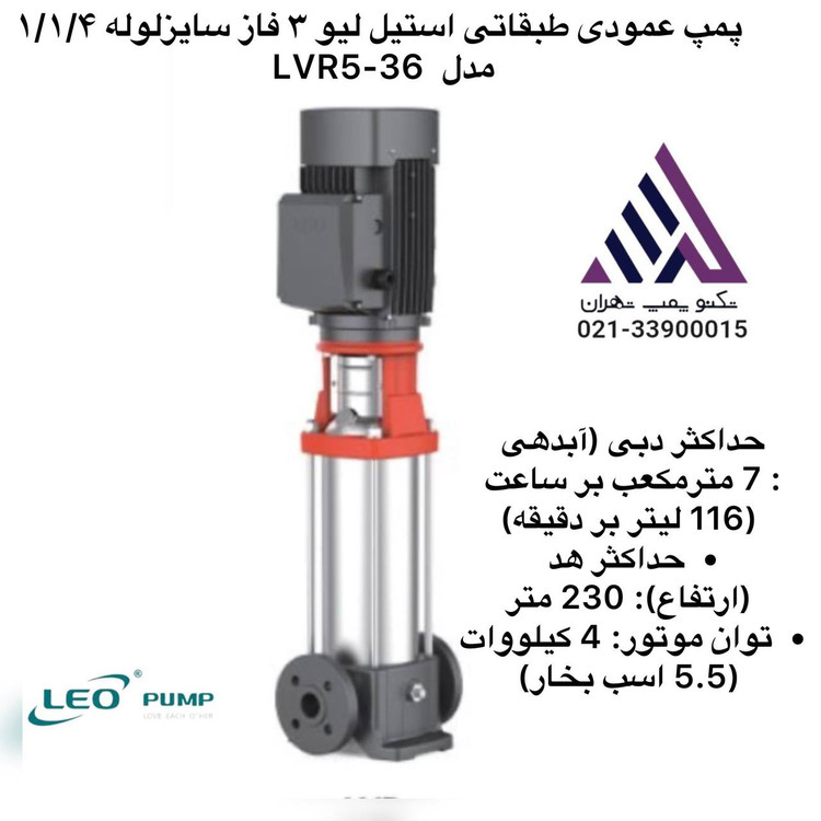 پمپ عمودی طبقاتی استیل لیو ٣ فاز سایزلوله ١/١/۴ مدل LVR5-36