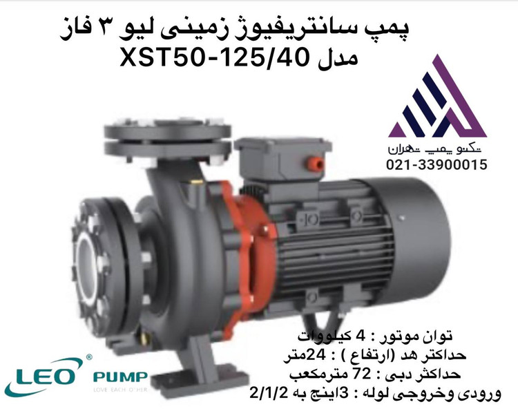 پمپ سانتریفیوژ زمینی لیو (LEO) ۳ فاز مدل XST50-125/40: مشخصات کامل فنی و راهنمای جامع خرید