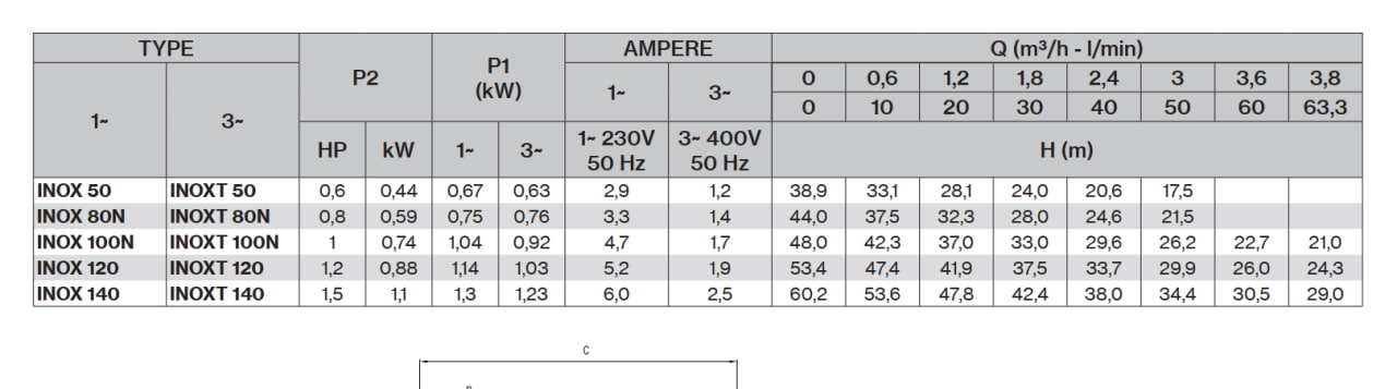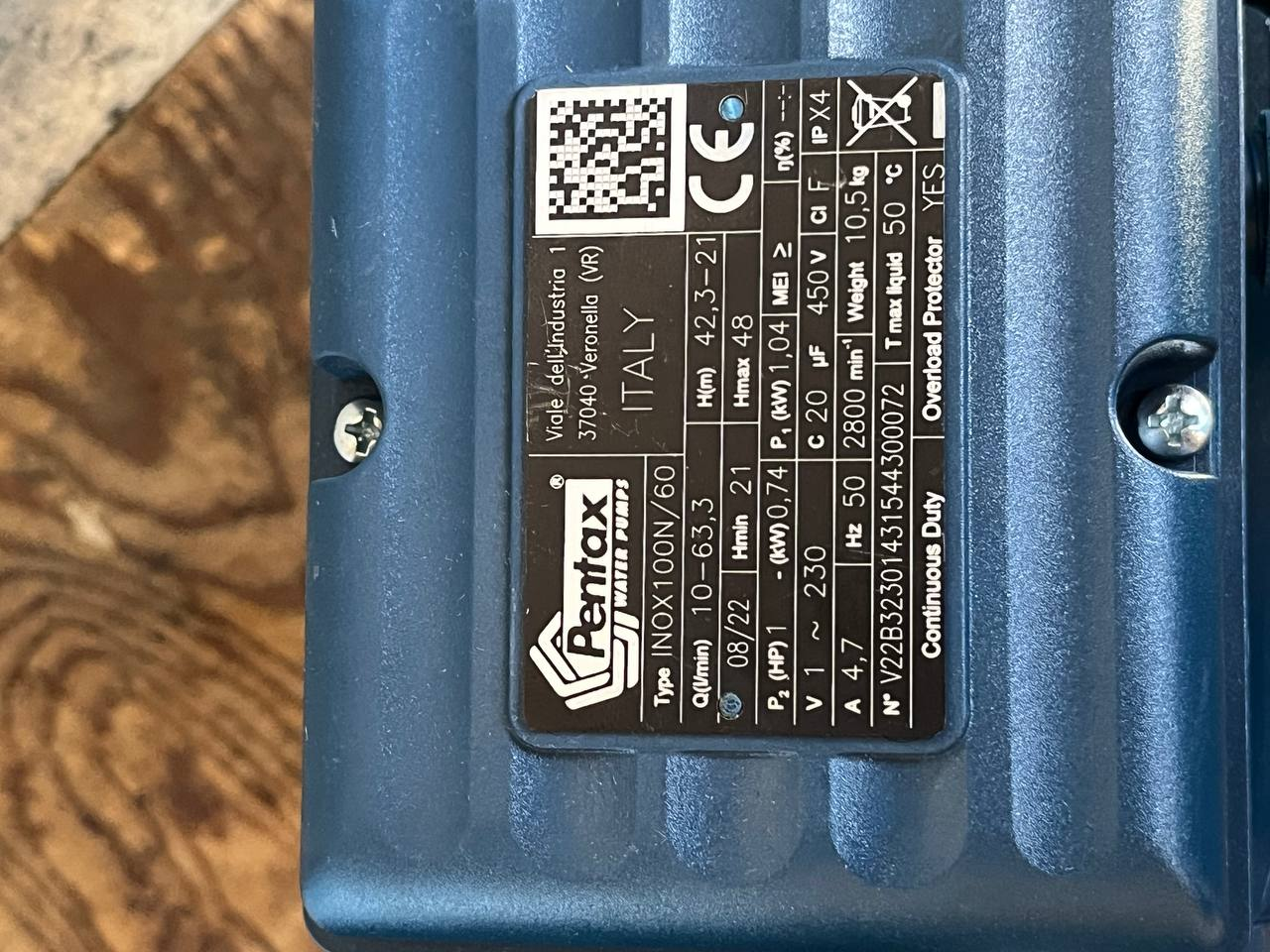 مشخصات فنی پمپ پنتاکس INOX100/N/60