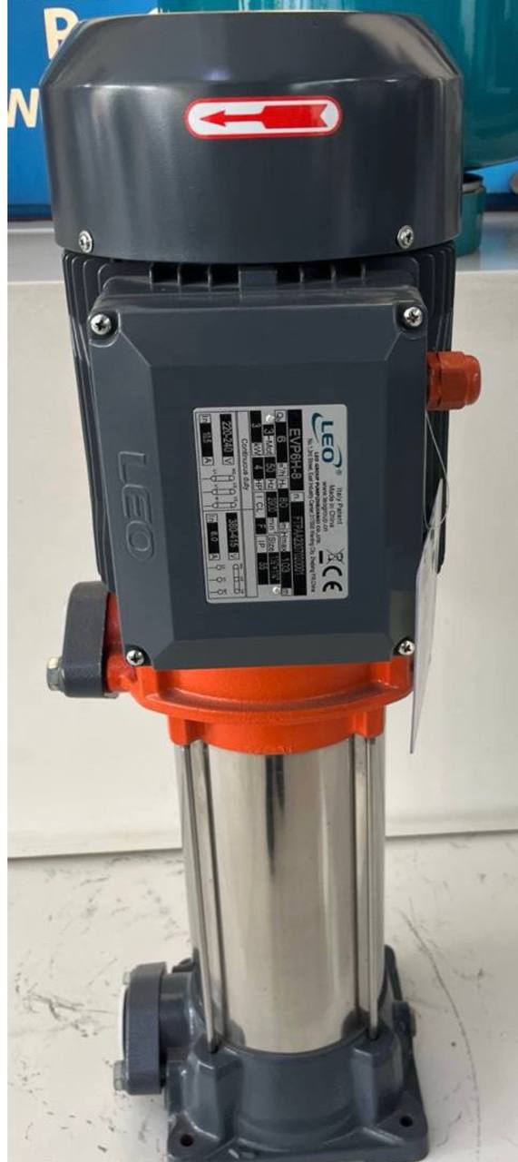 پمپ عمودی طبقاتی استیل سه فاز لئو مدل EVP6H-10 | هد ۱۳۰ متر | دبی ۱۰ مترمکعب/ساعت | توان ۴ kW