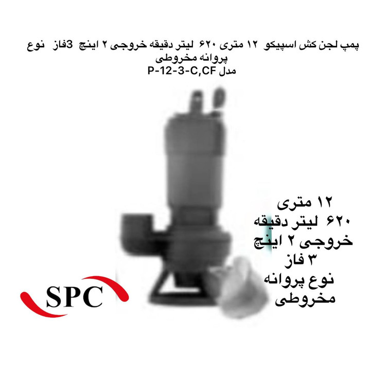 پمپ لجنکش Spico مدل P-12-3-C / CF از سری پمپهای مستغرق و صنعتی شرکت اسپیکو (SPICO) است که برای انتقال انواع فاضلاب، پساب، آبهای آلوده، لجن و سیالات نیمهغلیظ طراحی شده است.