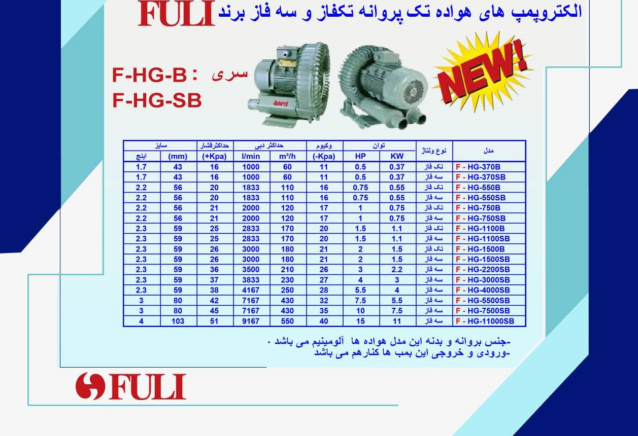پمپ هواده ( بلوئر ) فولی ٣ فاز ١/۵ کیلووات ١٨٠ مترمکعب ٢ اینچ مدل F-HG-1500SB