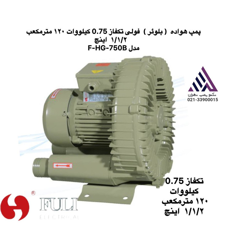 پمپ هواده ( بلوئر ) فولی (تکفاز 3 فاز ) 0.75 کیلووات ١٢٠ مترمکعب ١/١/٢ اینچ مدل F-HG-750B