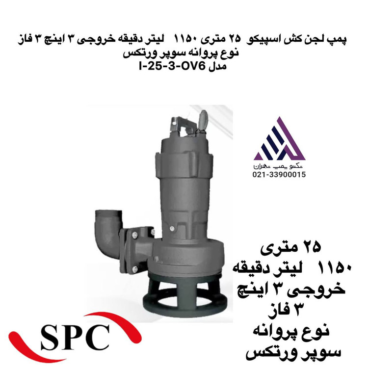 پمپ آب لجن کش اسپیکو ٢۵ متری ١١۵٠ لیتر دقیقه خروجی ٣ اینچ ٣ فاز نوع پروانه سوپر ورتکس مدل I-25-3-OV6