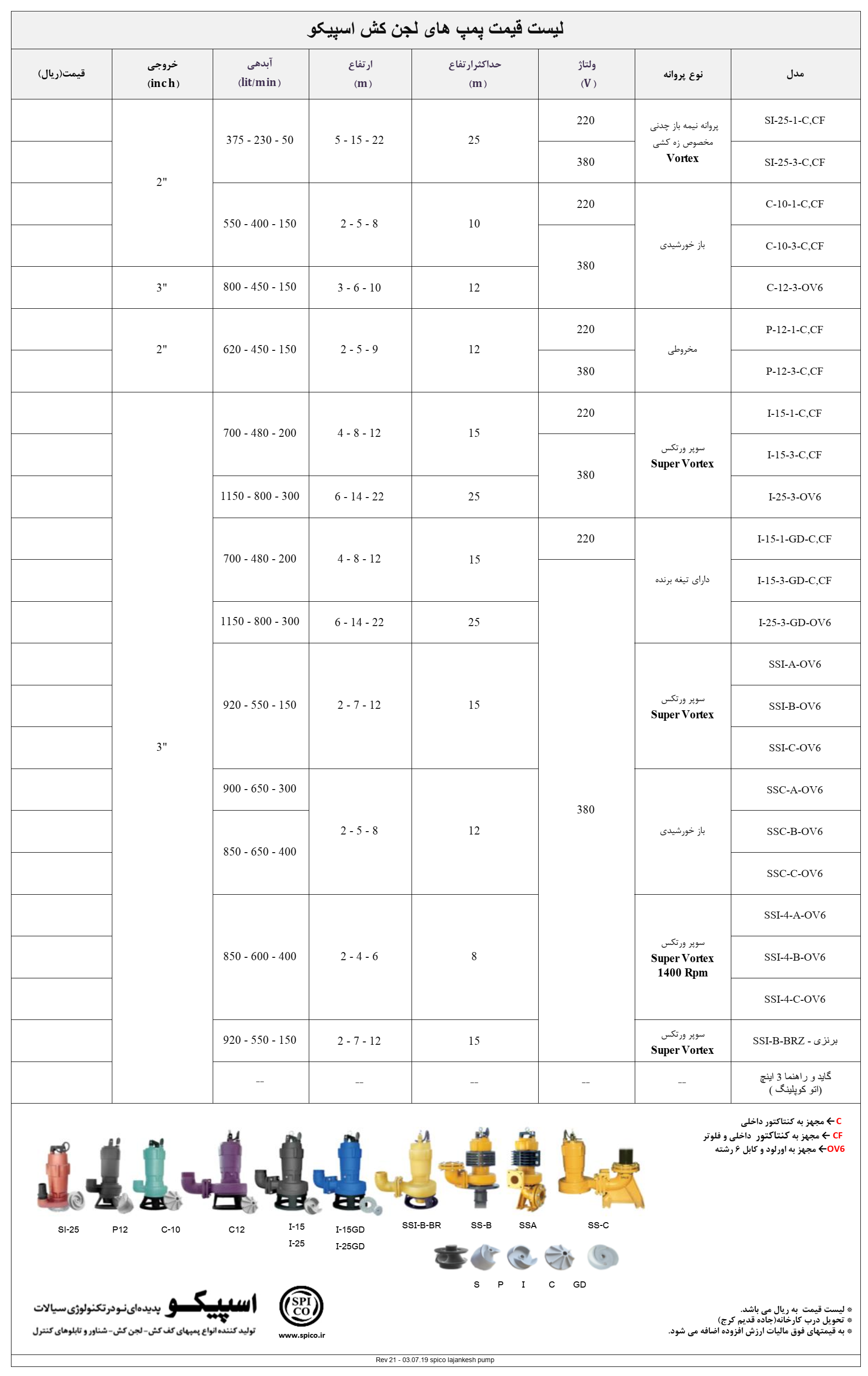 پمپ آب لجن کش اسپیکو١۵ متری ٩٢٠ لیتر دقیقه خروجی ٣ اینچ ٣فاز سوپر ورتکس مدل SSI-B-BR