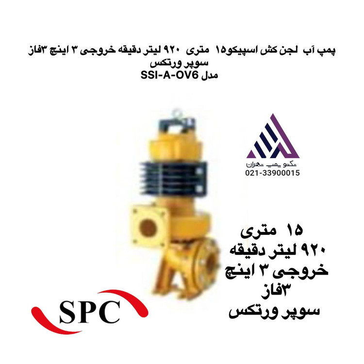 پمپ آب لجن کش اسپیکو١۵ متری ٩٢٠ لیتر دقیقه خروجی ٣ اینچ ٣فاز سوپر ورتکس مدل SSI-A-OV6