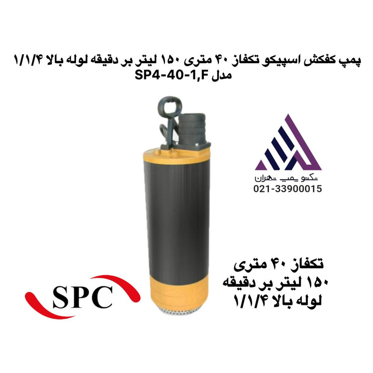 پمپ کفکش اسپیکو مدل SP4-40-1F از سری پمپهای مستغرق با خروجی فوقانی بوده که جهت پمپاژ آب تمیز از منابع مختلف مانند چاه، مخازن و استخرها طراحی شده است.