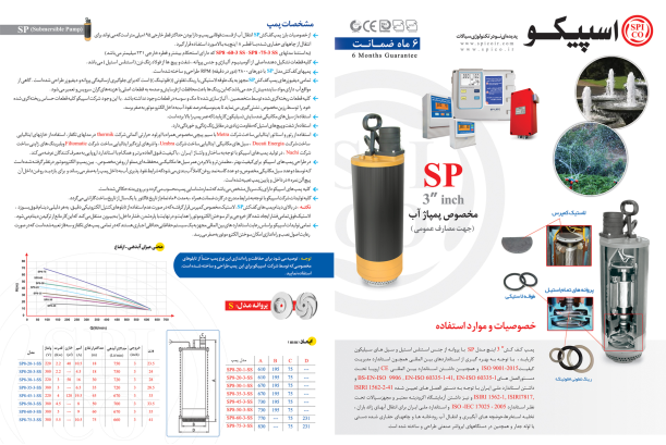 پمپ کفکش اسپیکو توان ۴/۵ اسب ۵٠ متری ۵۵٠ لیتر بر دقیقه لوله بالا ٣ابنچ مدلSP8-50-3-C,CF