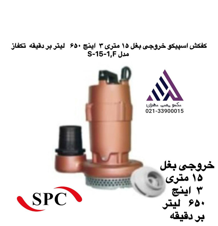 کفکش اسپیکو خروجی بغل ١۵ متری ٣ اینج ۶۵٠ لیتر بر دقیقه تکفاز مدل S-15-1,F