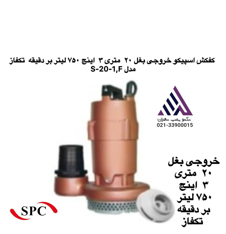 کفکش اسپیکو خروجی بغل ٢٠ متری ٣ اینج ٧۵٠ لیتر بر دقیقه تکفاز مدل S-20-1,F