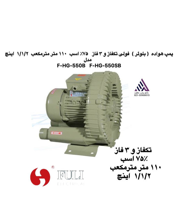 پمپ هواده ( بلوئر ) فولی تکفاز و ٣ فاز ٧۵٪‏ اسب ١١٠ متر مترمکعب ١/١/٢ اینچ مدل F-HG-550B F-HG-550SB