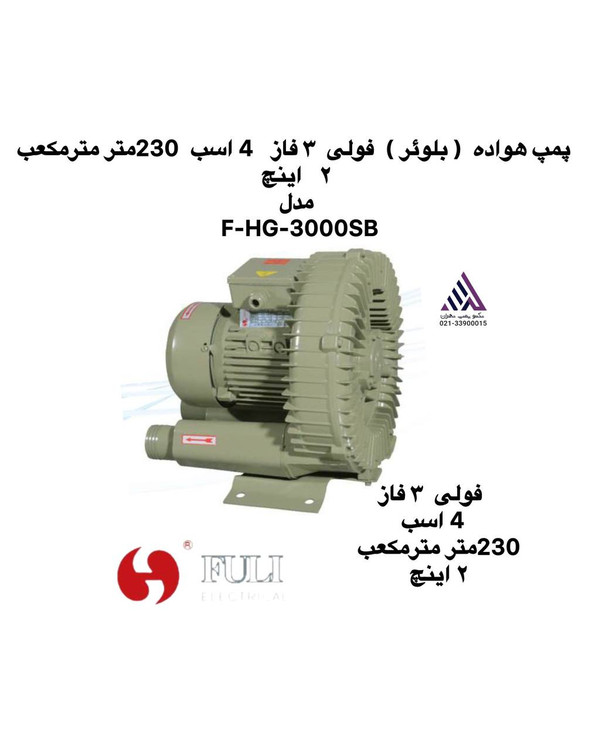 پمپ هواده ( بلوئر ) فولی ٣ فاز 4 اسب 230متر مترمکعب ٢ اینچ مدل F-HG-3000SB