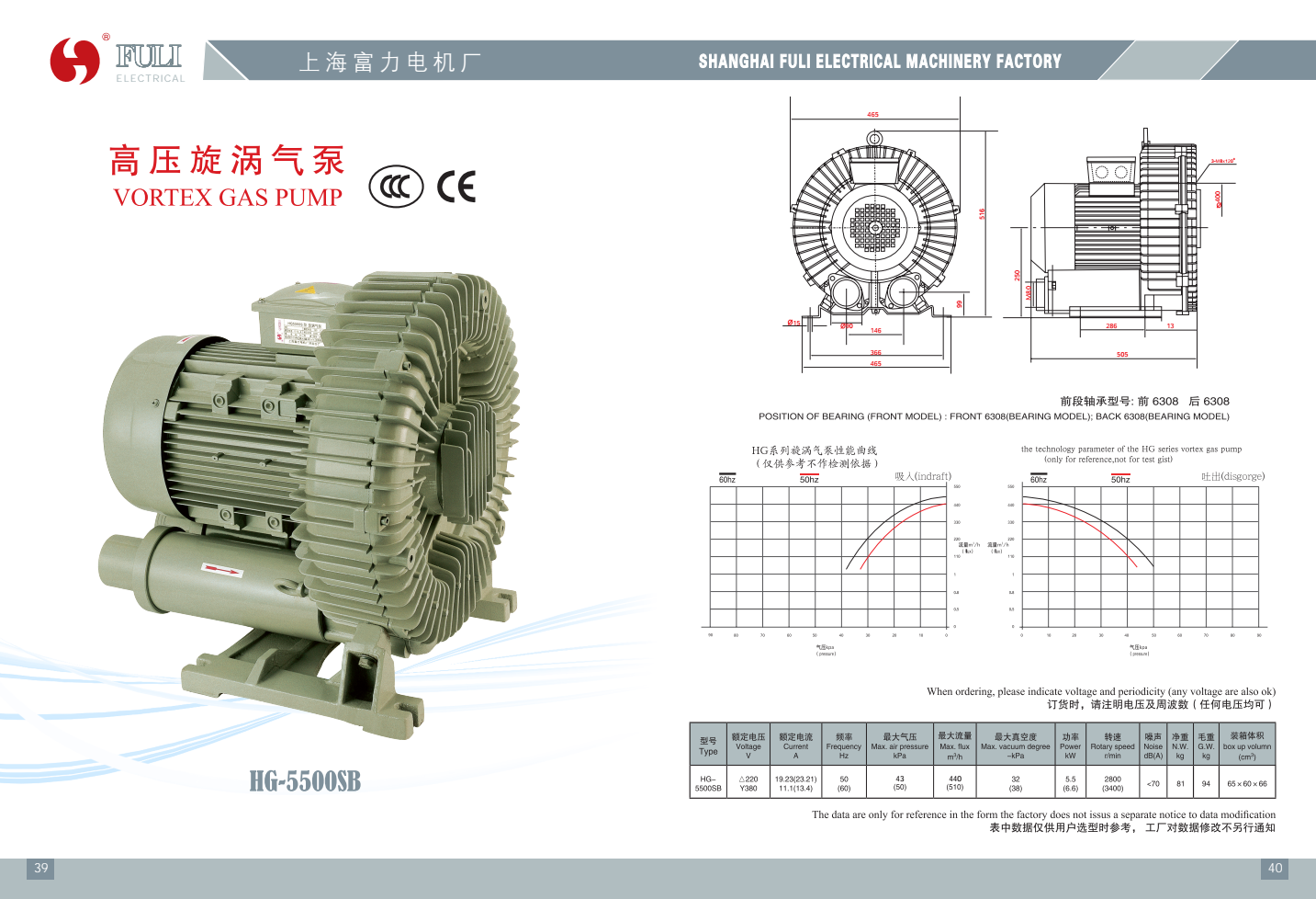 پمپ هواده ( بلوئر ) فولی ٣ فاز ٧/۵ اسب ۴٣٠ مترمکعب ٣ اینچ مدل F-HG-5500SB