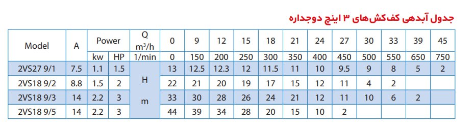 رادپمپ | پمپ کفکش دو جدار استیل | مدل 2VS189/2 | تکفاز | 2 اسب  | خروچی 3" | هد 22متر