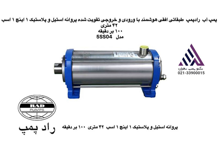 💧 پمپ آب رادپمپ طبقاتی افقی هوشمند 42 متری 1 اینچ 100 بر دقیقه مدل 5SS04
