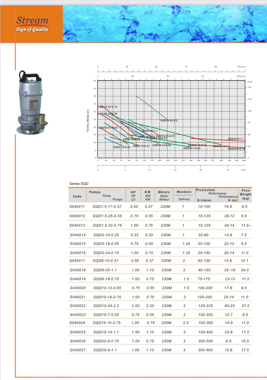 پمپ کفکش استریم 16 متری 1/1/2 فلوتردار 10 متر مکعب 1 اسب استریم مدل SQD10-16-0.75F