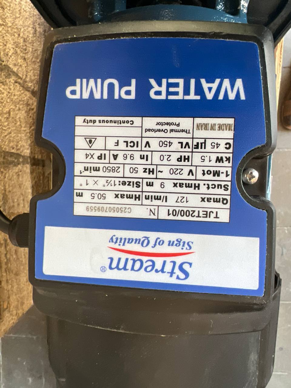 🧾 جدول مشخصات فنی پمپ آب جتی استریم TJET200/01