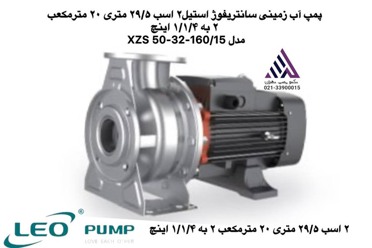 💧قیمت خرید پمپ آب زمینی سانتریفوژ استیل٢ اسب ٢٩/۵ متری ٢٠ مترمکعب ٢ به ١/١/۴ اینچ مدل XZS 50-32-160/15