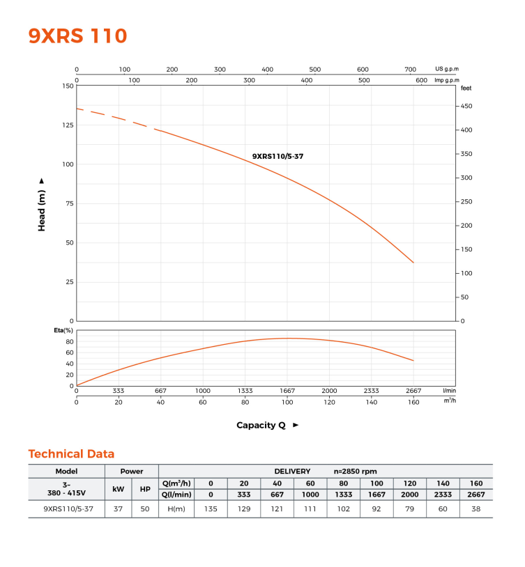 ⚙️ H2: مشخصات فنی پمپ لیو مدل 9XRS110/5-37