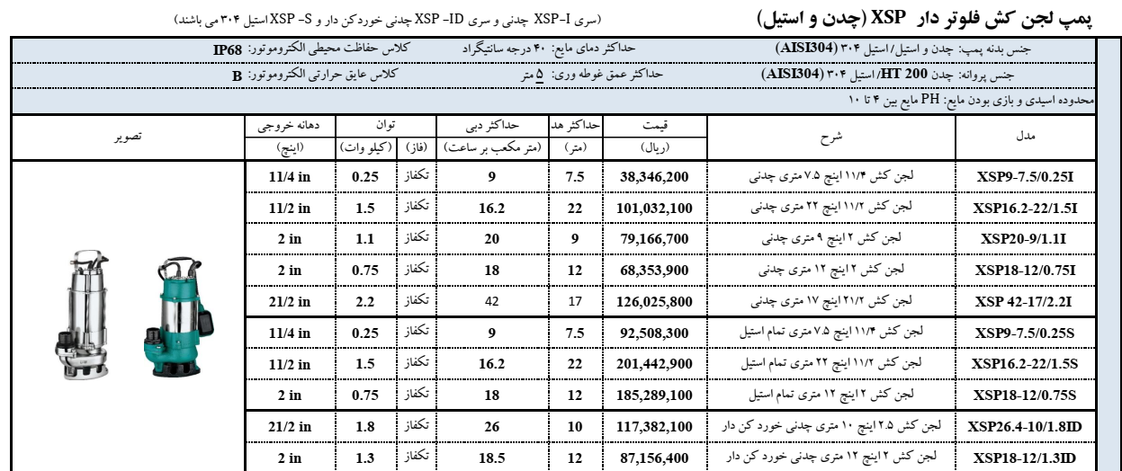 پمپ لجنکش لیو ۲ اینچ مدل XSP18-12/0.75I