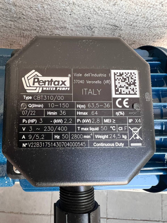 ⚙️ H2: مشخصات فنی پمپ پنتاکس CBT310/00