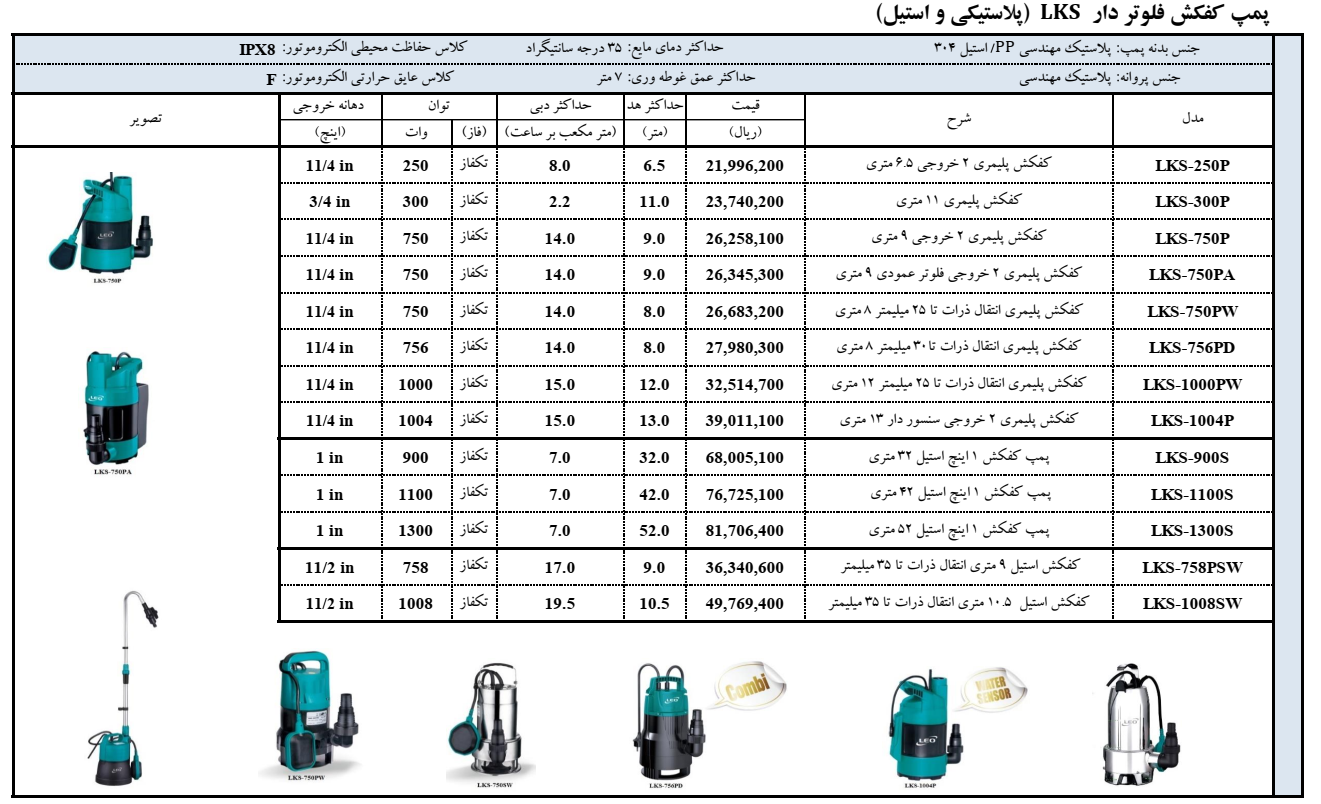مشخصات فنی پمپ کفکش LEO LKS-1100S