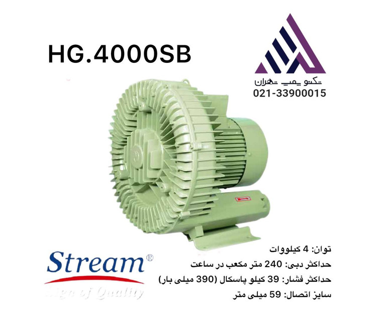 بلوئر ساید چنل استریم مدل HG-4000SB یکی از محصولات قدرتمند و باکیفیت برند Stream است که برای انتقال هوا، وکیوم، هوادهی و ایجاد فشار مثبت یا منفی در سیستمهای صنعتی طراحی شده است.