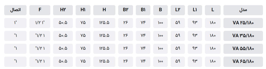 مشخصات فنی پمپ داب VA 55/180