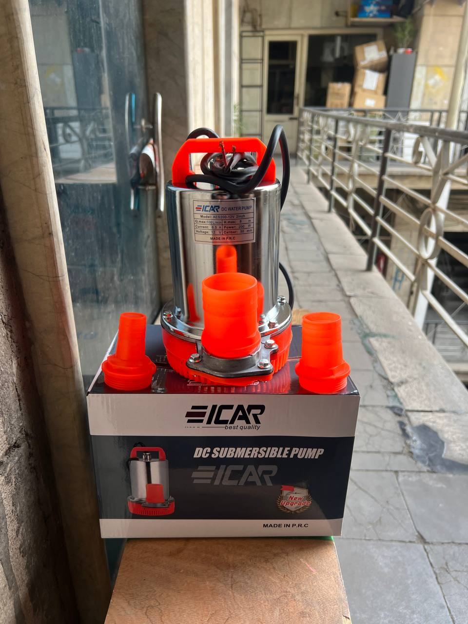 پمپ کفکش AES200-12V محصول برند نیکو یا ایکار، با توان ۲۰۰ وات و هد ۸.۵ متر، یکی از قویترین پمپهای ۱۲ ولتی موجود است.