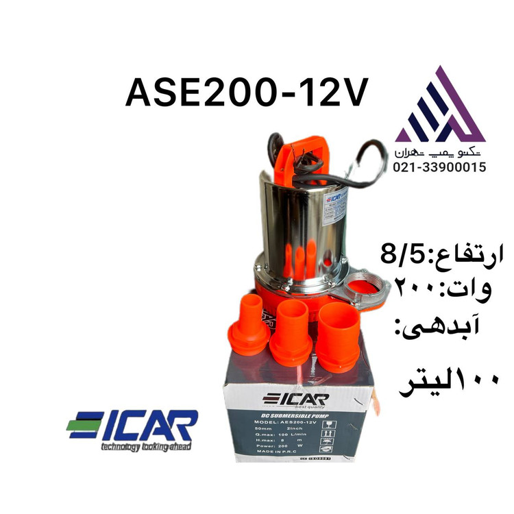 پمپ کفکش AES200-12V محصول برند نیکو یا ایکار، با توان ۲۰۰ وات و هد ۸.۵ متر، یکی از قویترین پمپهای ۱۲ ولتی موجود است.