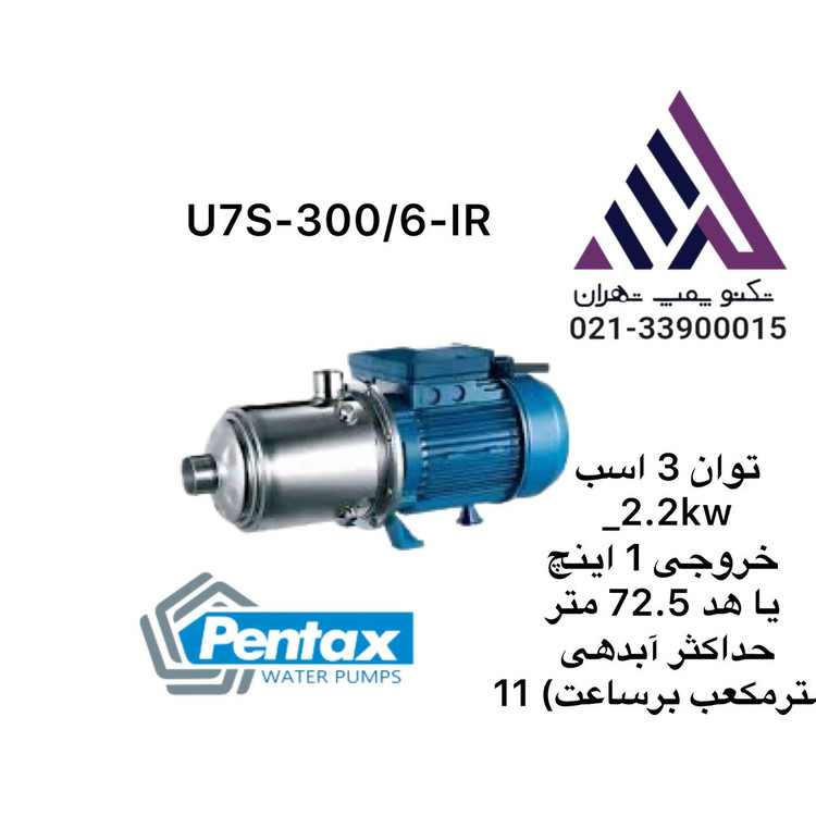 پمپ طبقاتی استیل Pentax U7S-300/6 | هد 72.5 متر | دبی 11 م³/ساعت | توان 2.2 کیلووات