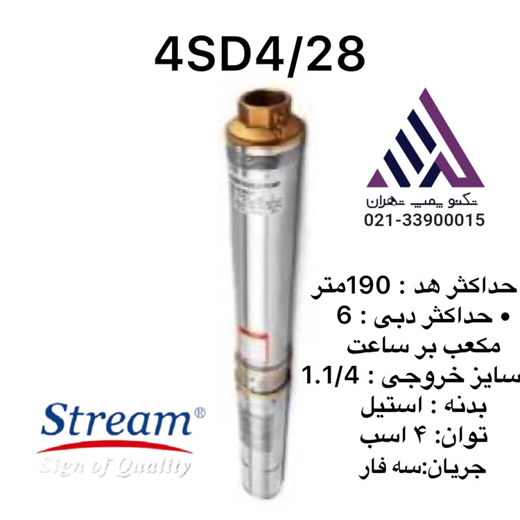 شناور استریم سه فاز لوله۴ ارتفاع 190متر(4SD4/28)