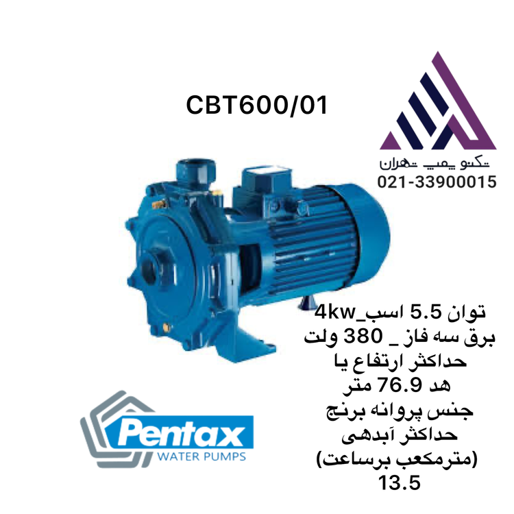 پمپ آب 64 متری، 1/4-1 اینچ، سه فاز پروانه برنجی 5.5 اسب، 10 مترمکعب بر ساعت، پنتاکس ساخت ایتالیا مدل CBT600/01