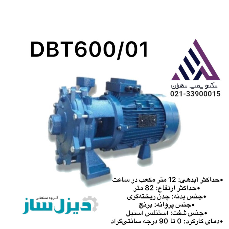 پمپ DBT600/01 با موتور سهفاز عرضه میشود و برای پروژههای بزرگ و حرفهای طراحی شده است.