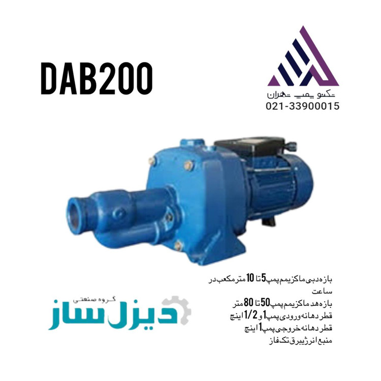 پمپ آب خود مکش 3 اسب دو پروانه برنجی تکفاز دیزل ساز مدل DAB200