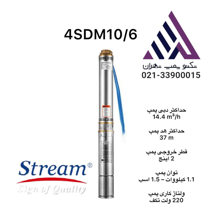 پمپ شناور استریم 2 اینچ 37 متری 1.5 اسب مدل 4SDM10/6