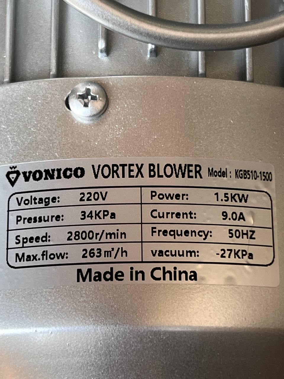 پمپ هواده ونیکو مدل KGB510-1500 یکی از قویترین بلوئرهای سایدچنل در ردهی تکفاز است.