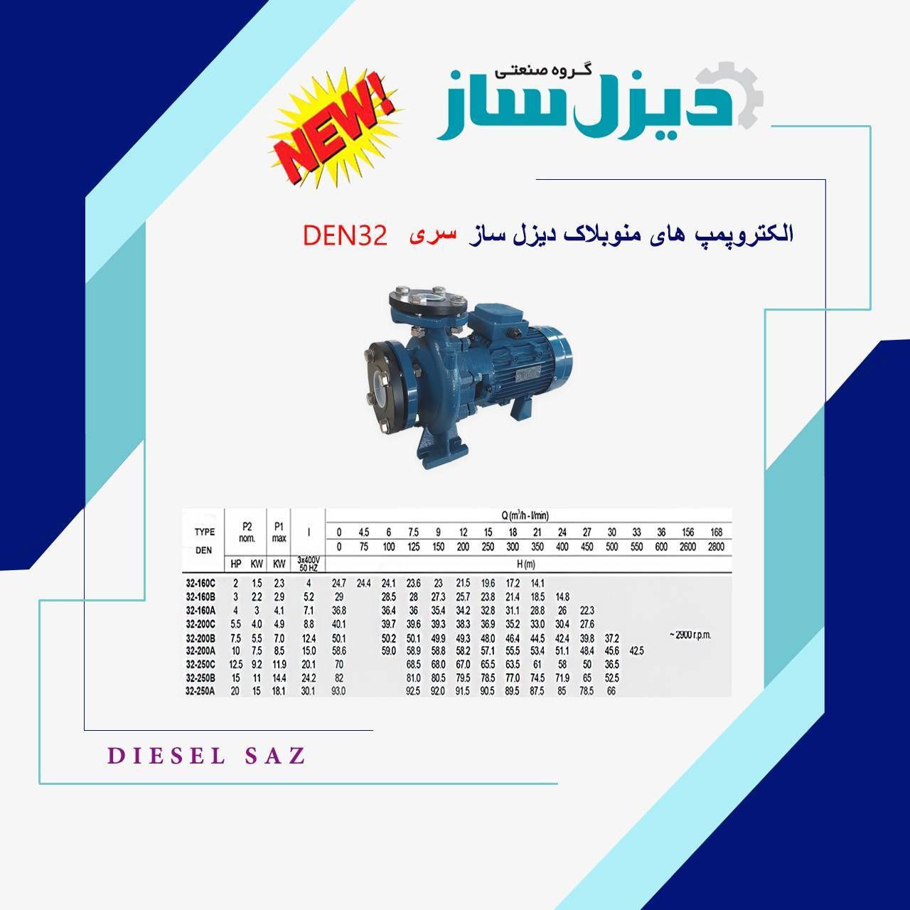 🏭 پمپ آب بشقابی زمینی (منوبلاک) ۴ اسب ۳ فاز دیزلساز DEN32-160A