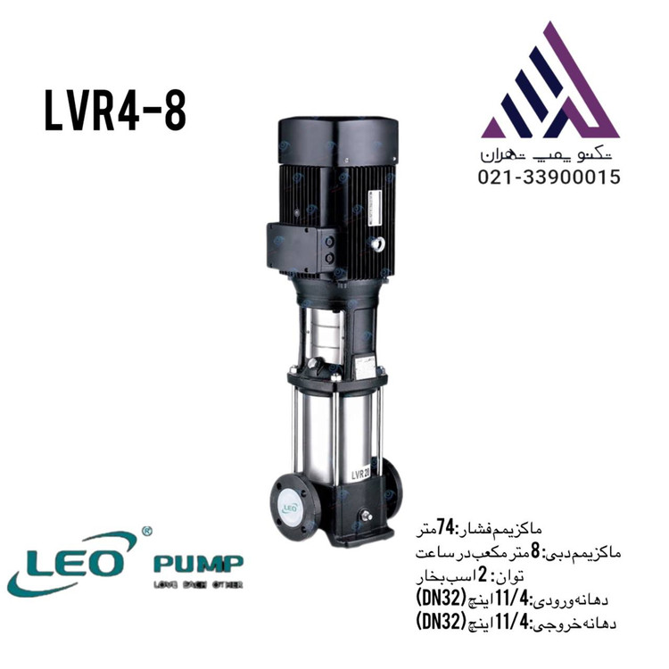 پمپ طبقاتی استیل لئو | مدل LVR4-8 | سه فاز | 2 اسب | هد 81 متر | خروجی 1/1/4 اینچ