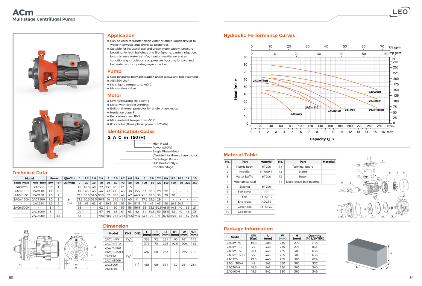⚙️ مشخصات فنی پمپ آب دو پروانه LEO 2ACm150H