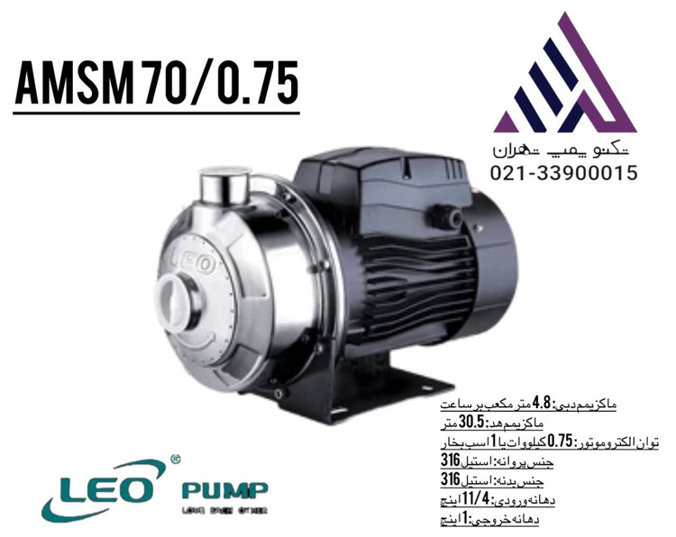 مشخصات فنی پمپ استیل 304 لیو AMSM70/0.75
