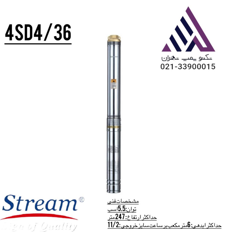 پمپ شناور کامل شناور 247 متری 1/2 1 استریم مدل 4SD4/36
