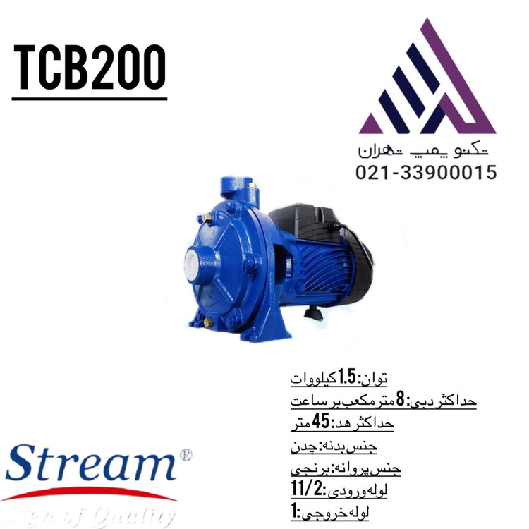 استریم | پمپ بشقابی دو پروانه برنجی | مدل TCB200 | دو اسب | تکفاز | 1 اینچ
