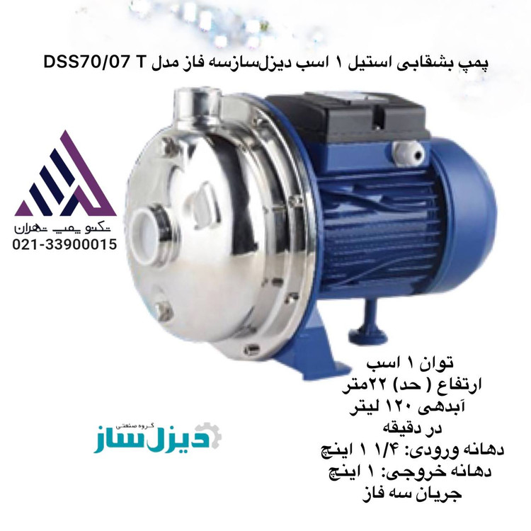 پمپ بشقابی استیل ١ اسب دیزلسازسه فاز مدل DSS70/07 T