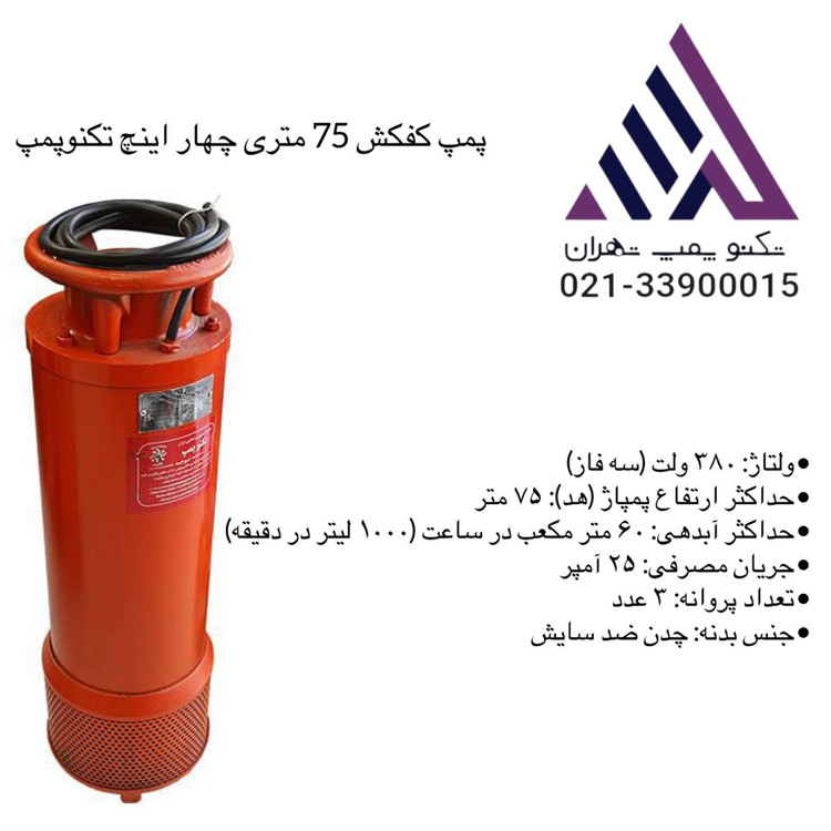 پمپ کفکش 75 متری 4 اینچ تکنوپمپ مدلT75-4